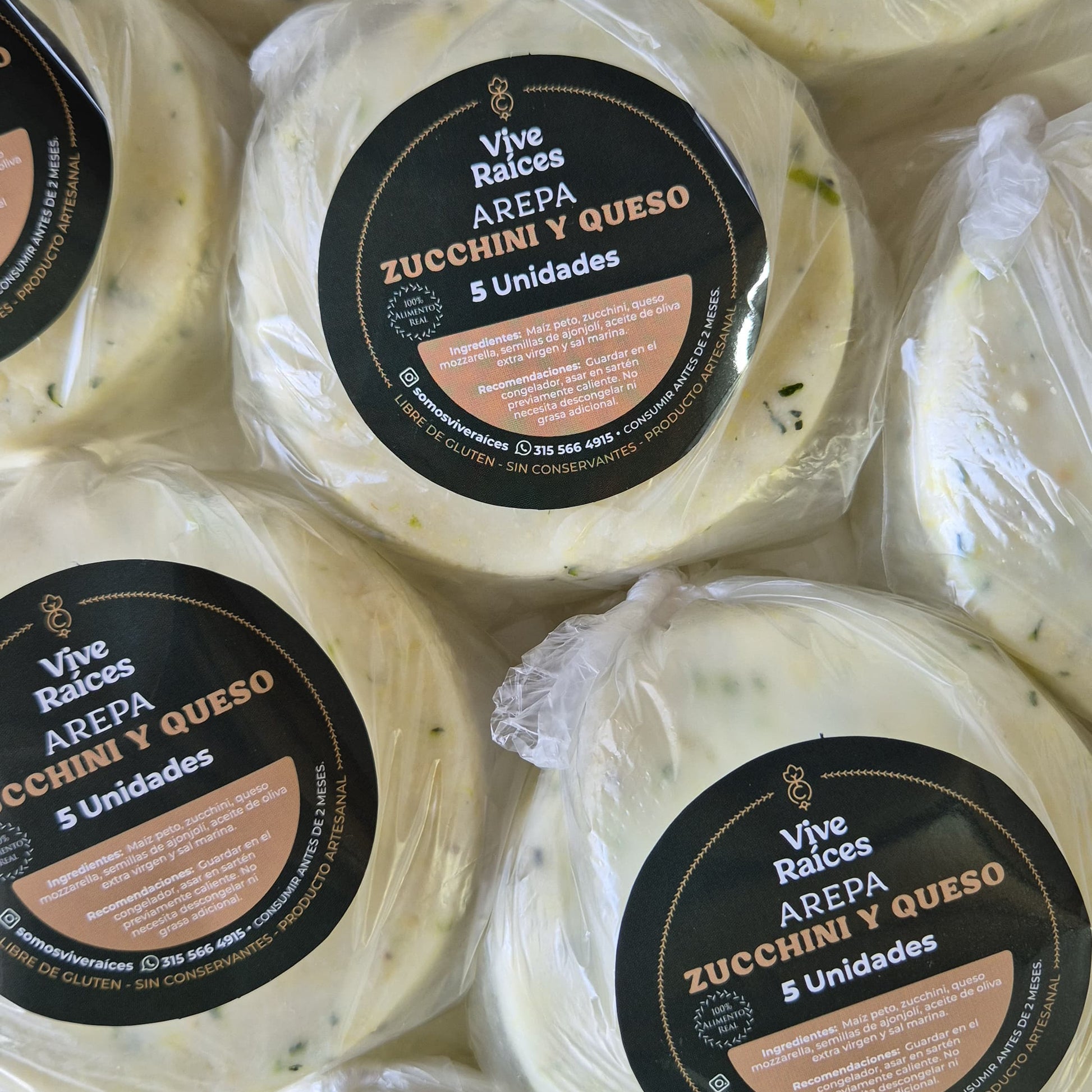 Maíz peto blanco, zucchini verde, semillas de ajonjolí, aceite de oliva, queso mozzarella y sal marina.