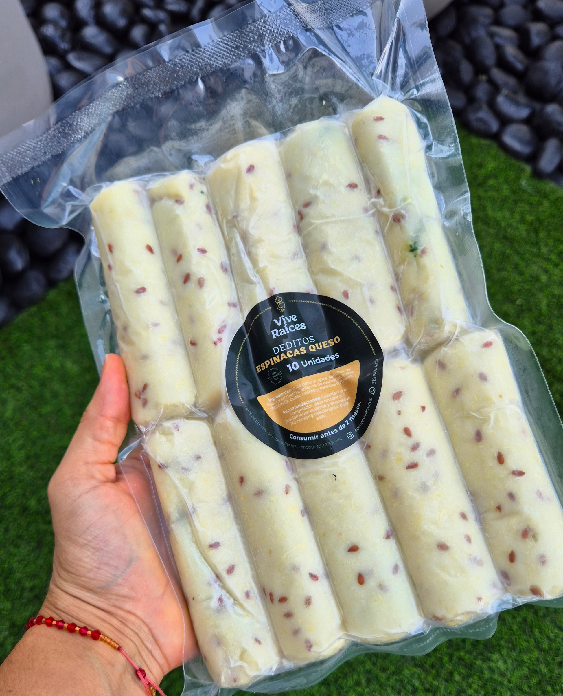 La suavidad de la masa de yuca orgánica con linaza se combina con un relleno cremoso y nutritivo de espinacas y quesos, logrando un sabor delicioso y lleno de nutrientes.