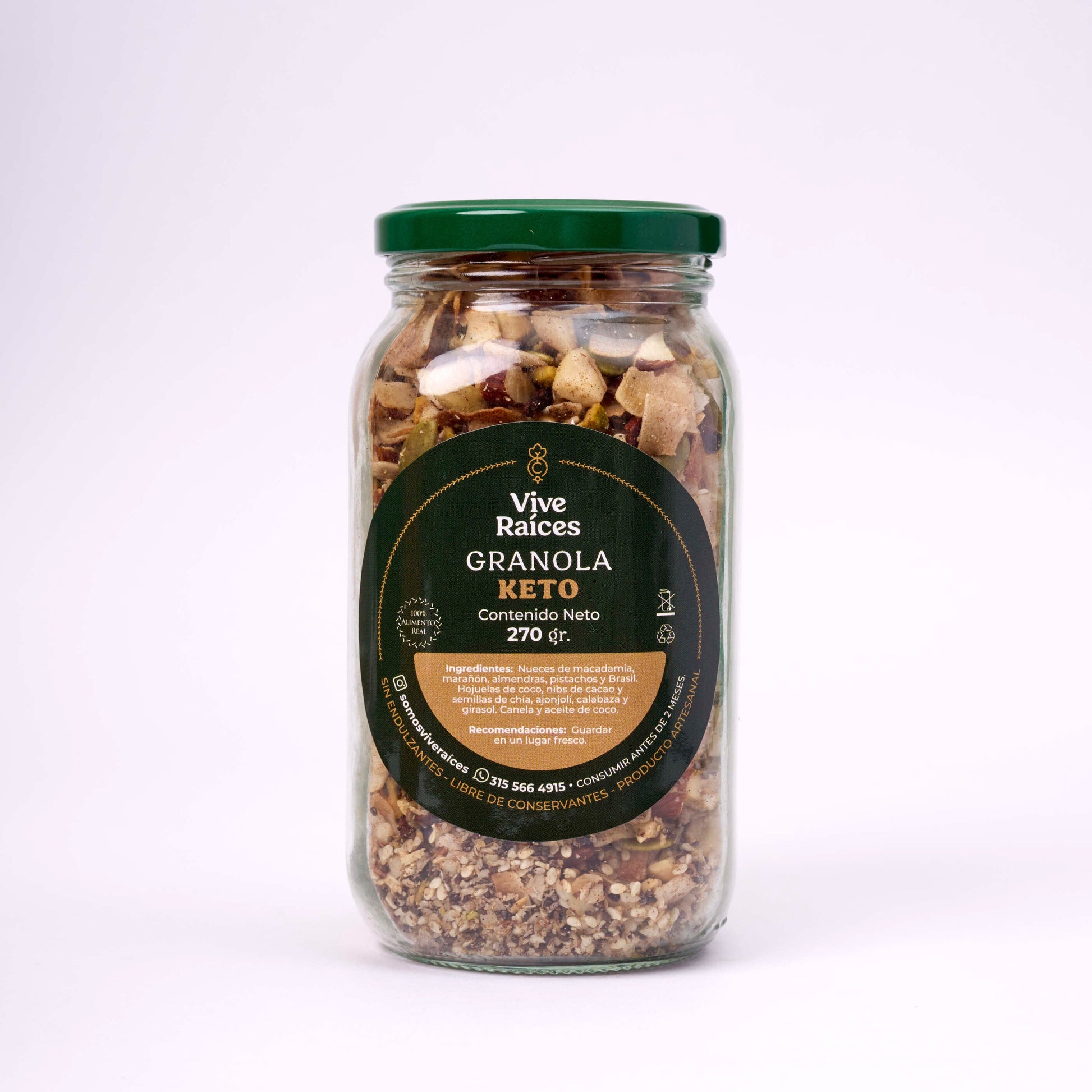 Crujiente, nutritiva y libre de azúcares añadidos, nuestra granola keto está cargada de grasas saludables, proteínas vegetales y fibra. Las nueces y semillas aportan minerales esenciales como magnesio, zinc y selenio, mientras que el coco, el cacao y la canela le dan un sabor irresistible.