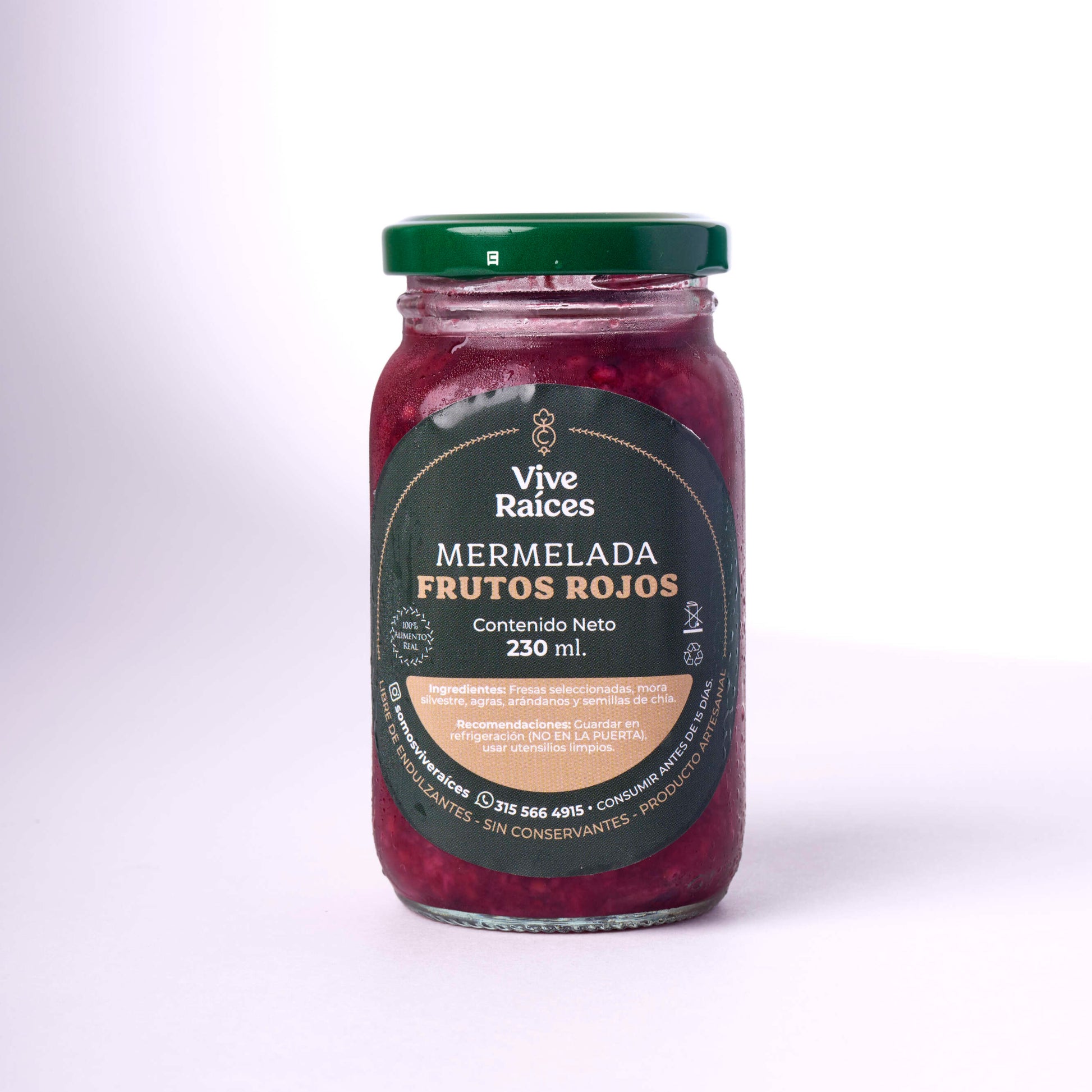 Nuestra mermelada de frutos rojos con chía es naturalmente dulce, rica en antioxidantes, vitamina C y fibra. Las semillas de chía aportan omega-3 y un extra de textura, convirtiéndola en una opción nutritiva y sin conservantes.